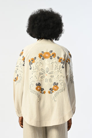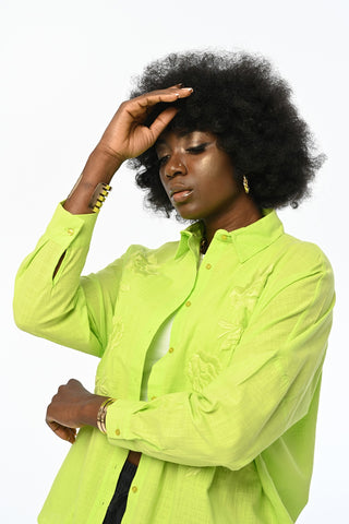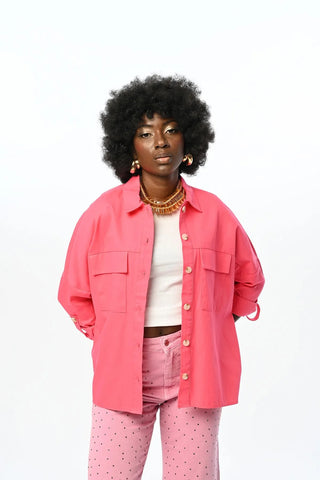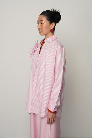 Çiçek Detaylı Pembe Beyaz Çizgili Kadın Gömlek - %100 Pamuk, Oversize, Uzun Kesim
