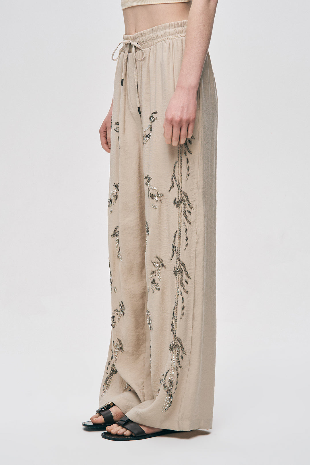 Kadın Önü ve Yanı Boncuk İşlemeli Bol Paça Pantolon