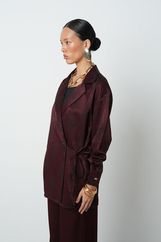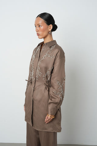 Kadın Taş İşlemeli Belden Bağlamalı Düz Renk Uzun Tesettüre Uygun Ceket