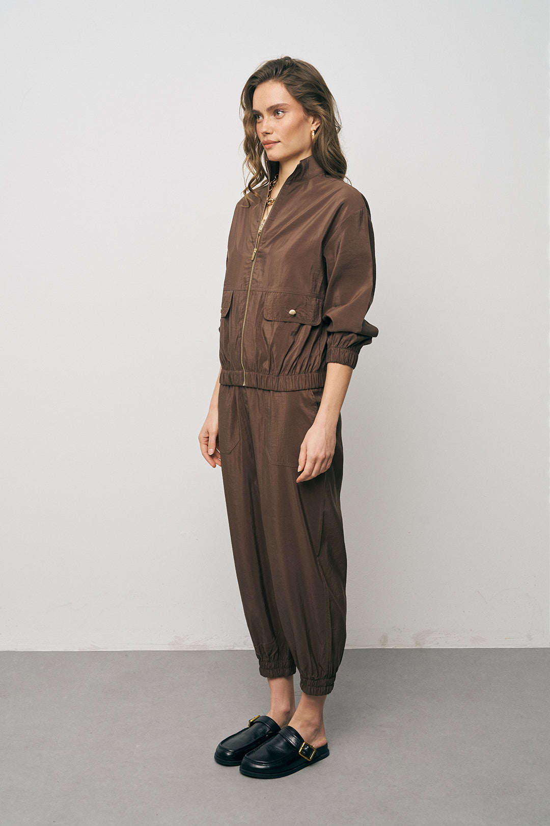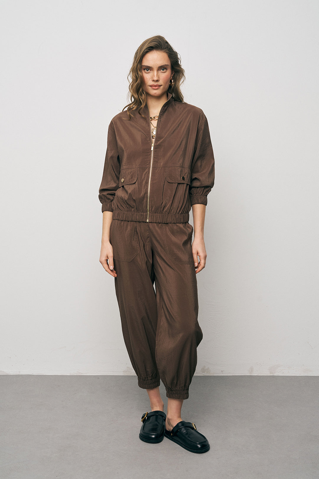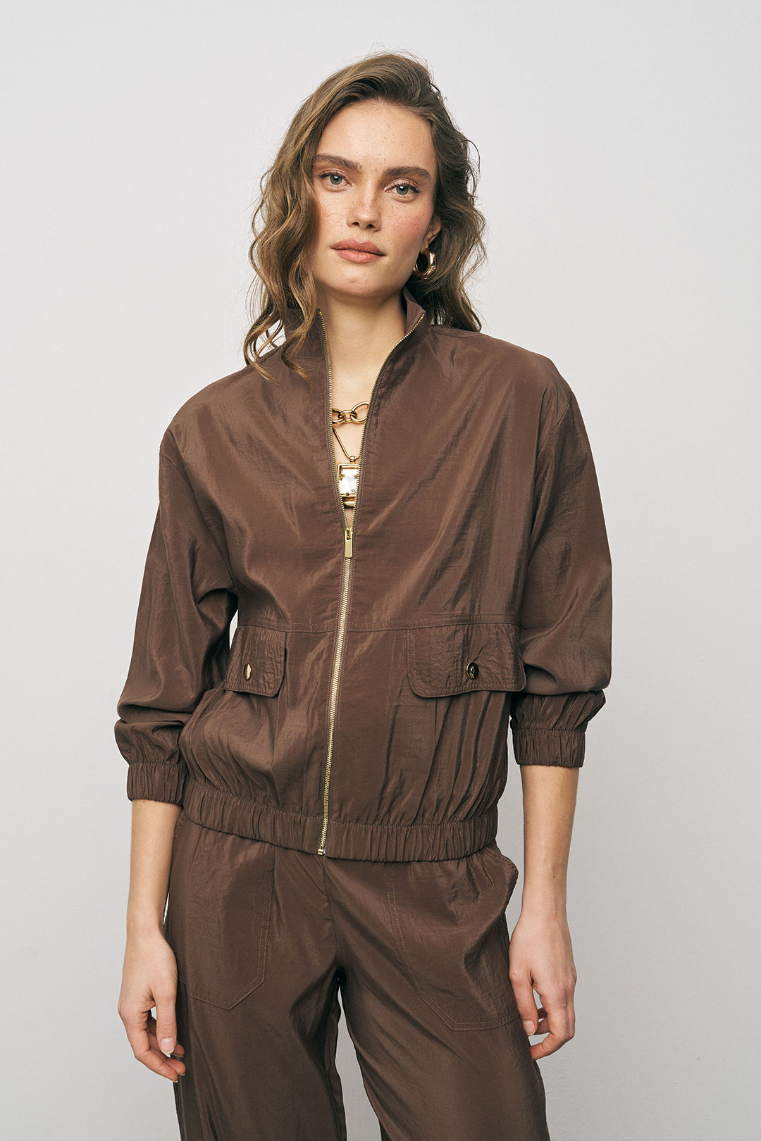 Modern Aksesuarlar: Bu ceketi iri halka küpeler ve görsellerdeki gibi gold zincir kolyelerle tamamlayarak sportif duruşunuza lüks bir hava katın.