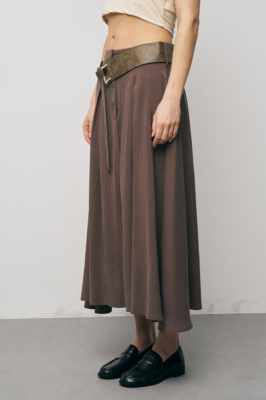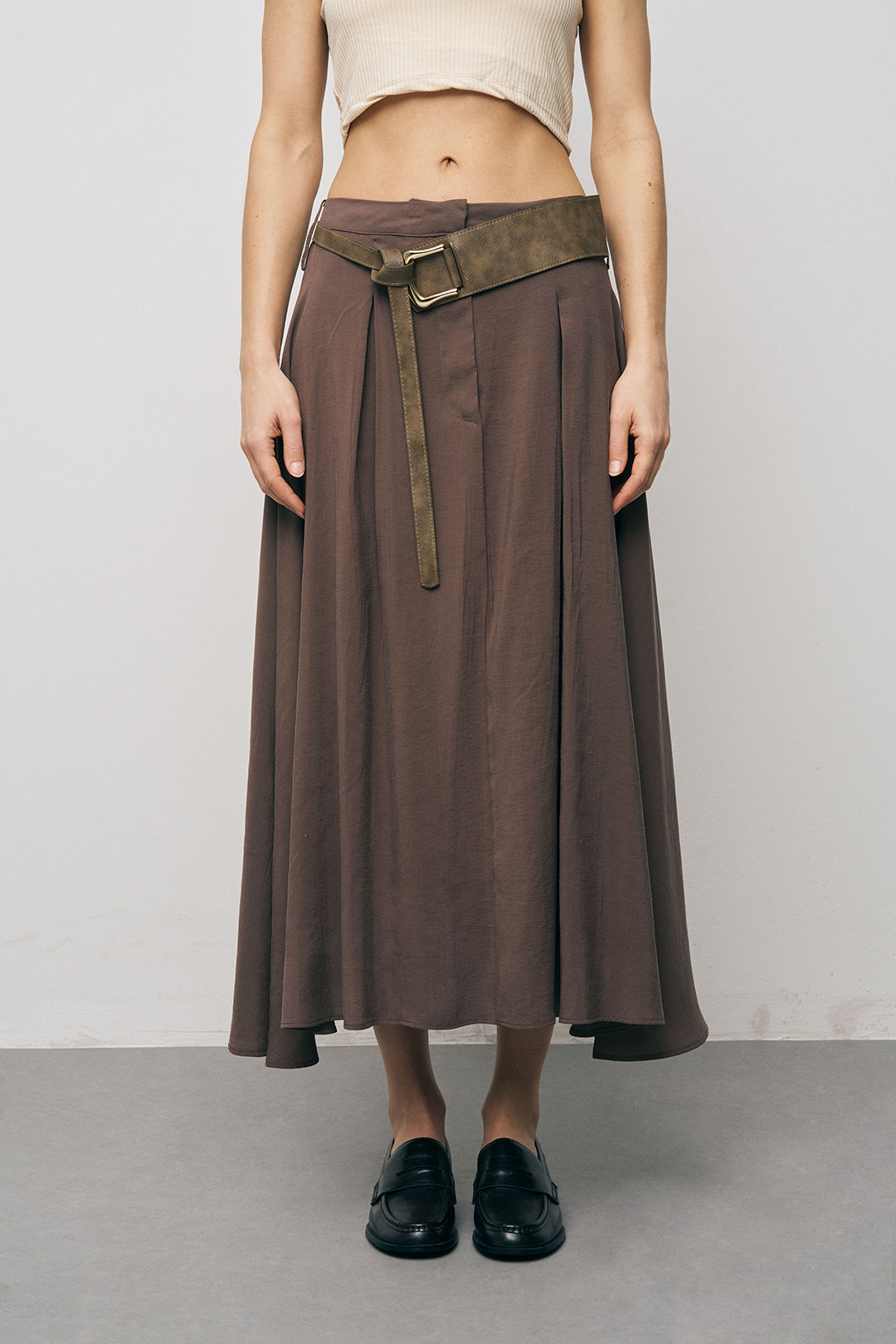 Kadın Modal Retro Kemerli Kloş Midi Etek
