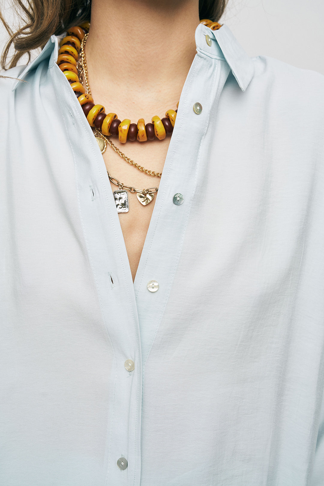 Türkiye’de kendi üretim tesislerimizde yüksek kalite standartlarıyla hazırlanan bu basic gömlek, %85 Modal ve %15 Polyester karışımı sayesinde ipeksi bir yumuşaklığa ve dökümlü bir yapıya sahiptir. Modal kumaşın nefes alan doğal dokusu, gün boyu üst düzey konfor sunarken oversize kesimi modern ve zamansız bir silüet oluşturur. 2026 "rahat şıklık" trendine uygun olarak tasarlanan bu parça, gardırobunuzun en çok yönlü kilit parçalarından biri olacak.