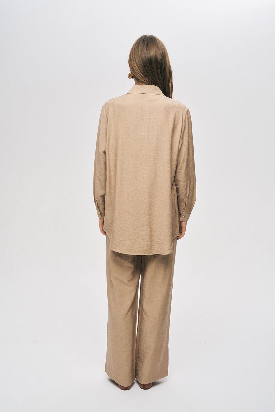 1. Oriental İkonik Set: Gömleğinizi, serinin aynı işleme diline sahip Kadın Oriental Boncuklu Pantolon veya Kimono ile birleştirerek hayranlık uyandıran bir takım görünümü yakalayın.