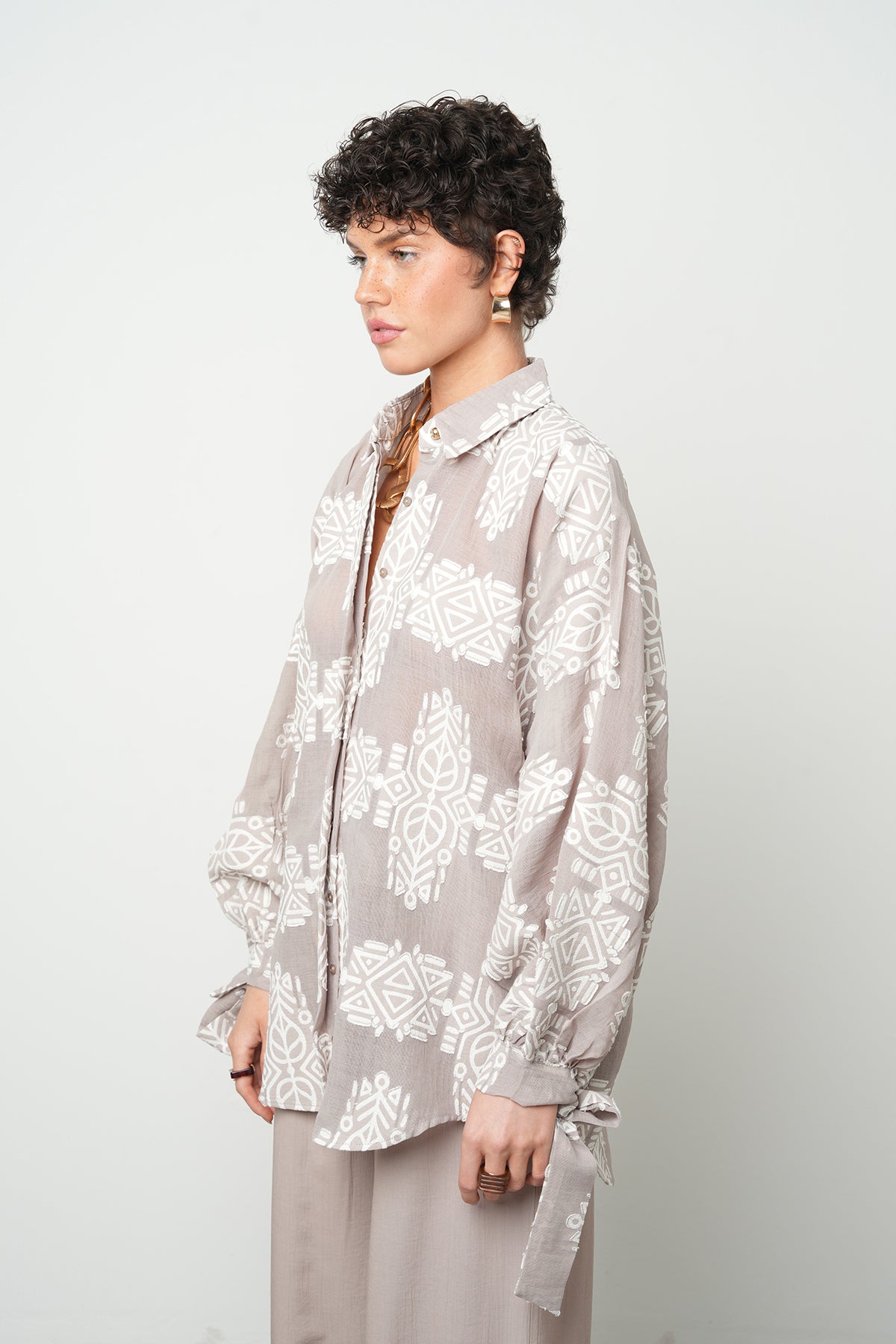Bol kesimi sayesinde vücuda yapışmaz ve gün boyu konforlu kullanım sağlar.Özgün desen yapısı ile sade kombinlere hareket katar, hem pantolon hem eteklerle uyum sağlar.