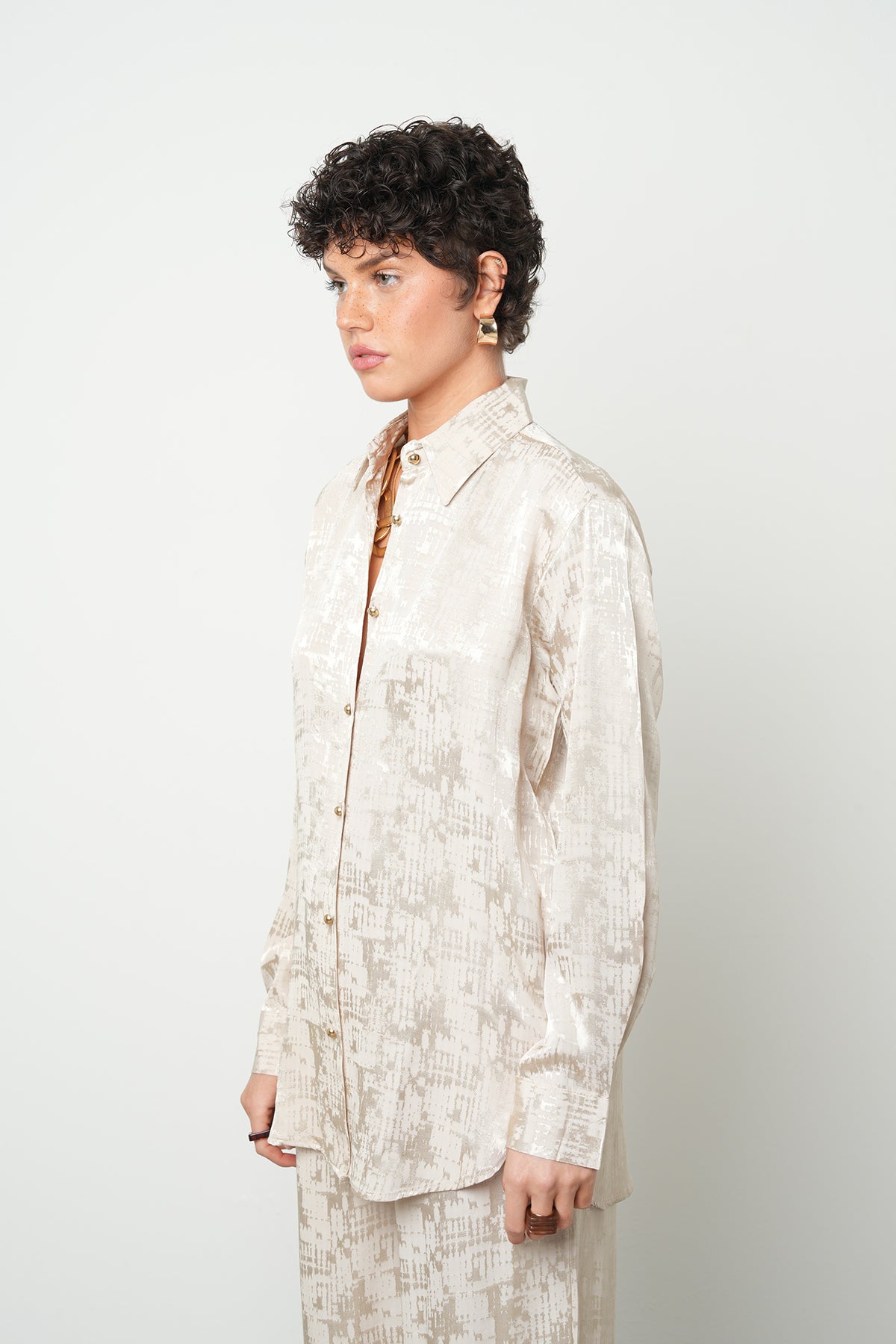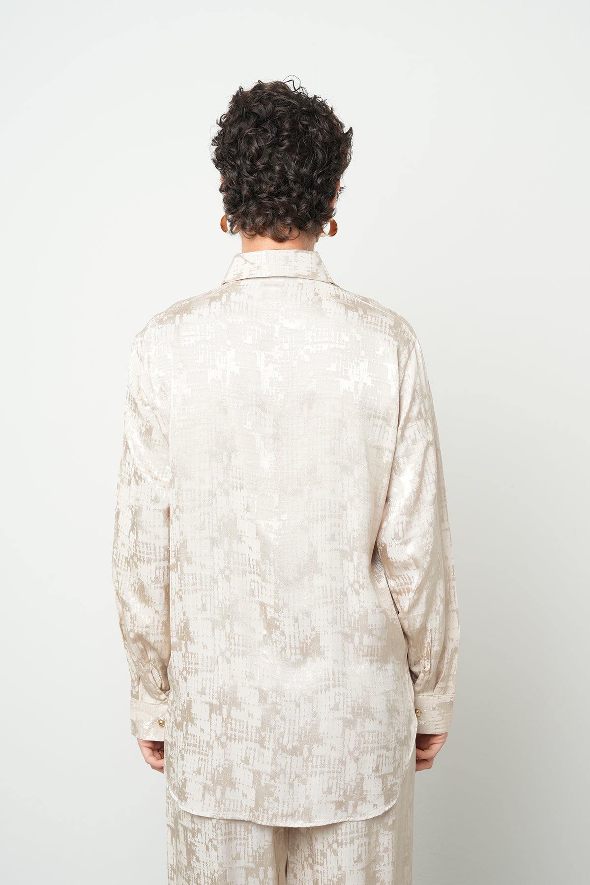 Kadın Rayon & Viskon Karışımlı İpeksi Dokulu Desenli Bej Gömlek
