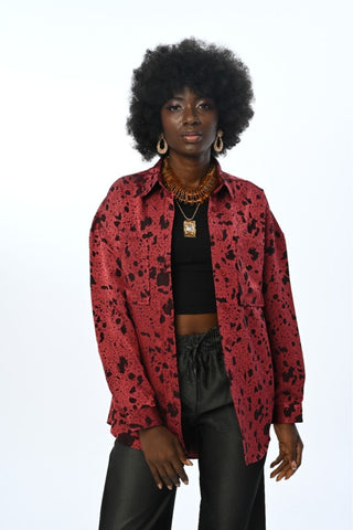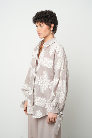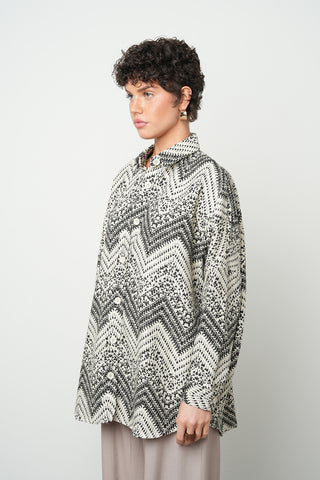 Kadın Oversize Etnik Desenli Uzun Kollu Dökümlü Gömlek