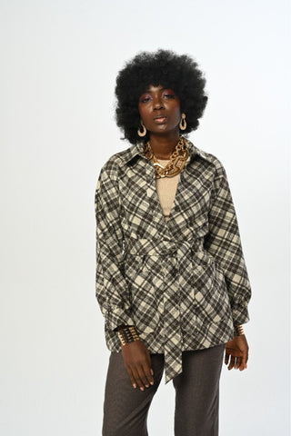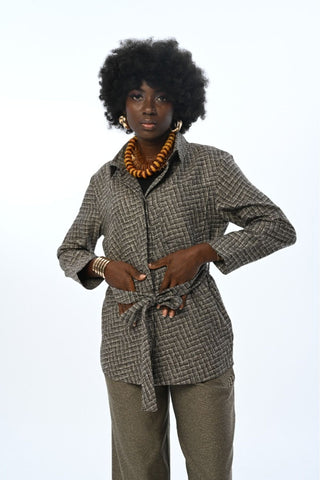KADIN KARIŞIK DESENLİ CEPLİ KUŞAKLI GÖMLEK