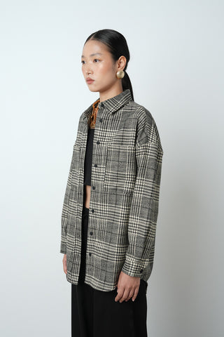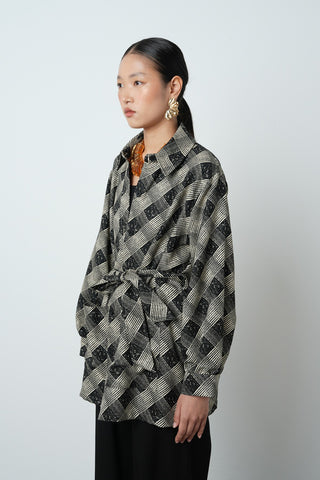 Kadın Siyah-Krem Karışık Desenli Oversize Kesim Gömlek