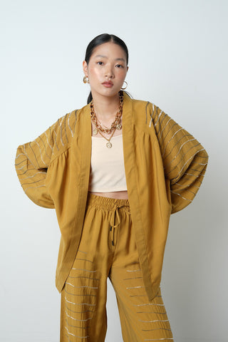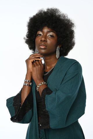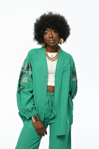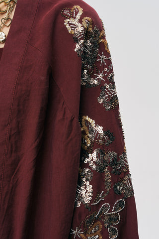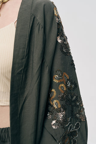 Kadın Etnik Işıltı Boncuk ve Nakış İşlemeli Lüks Liyosel Oversize Kimono