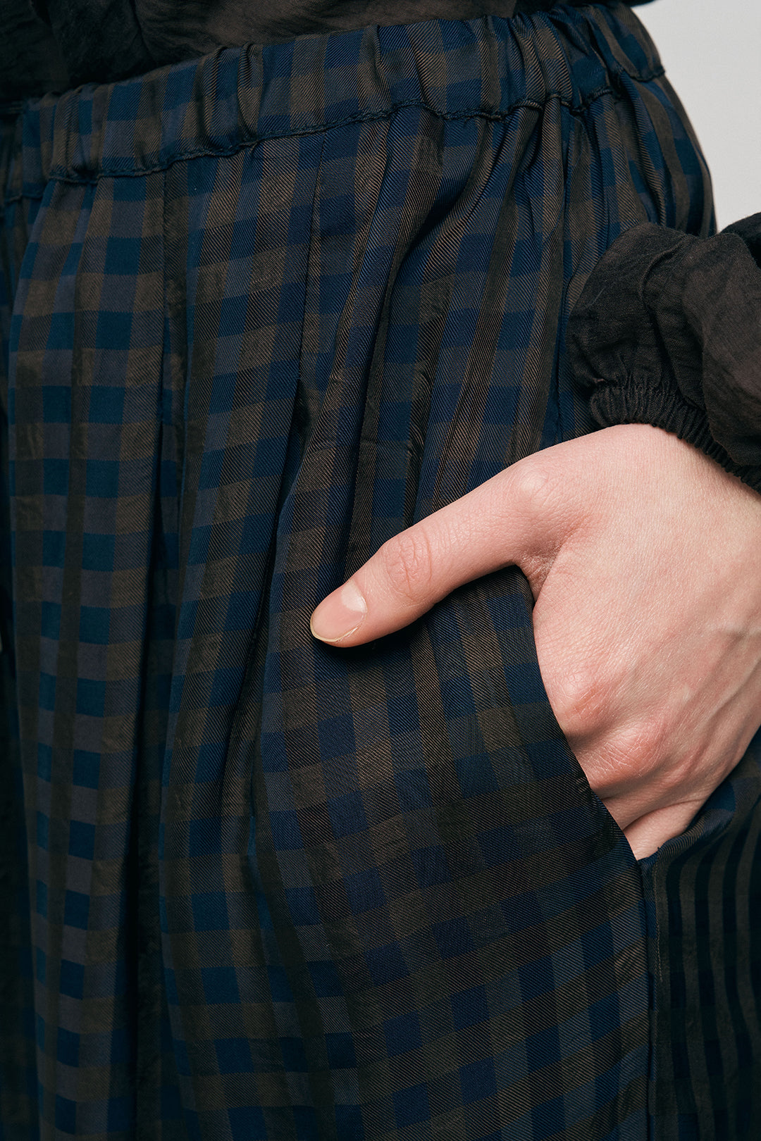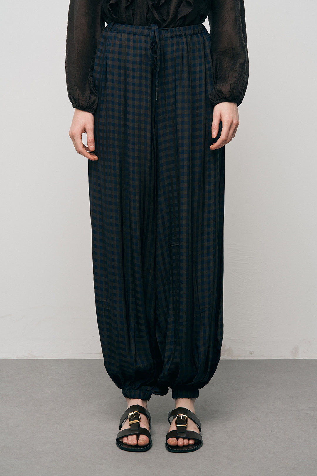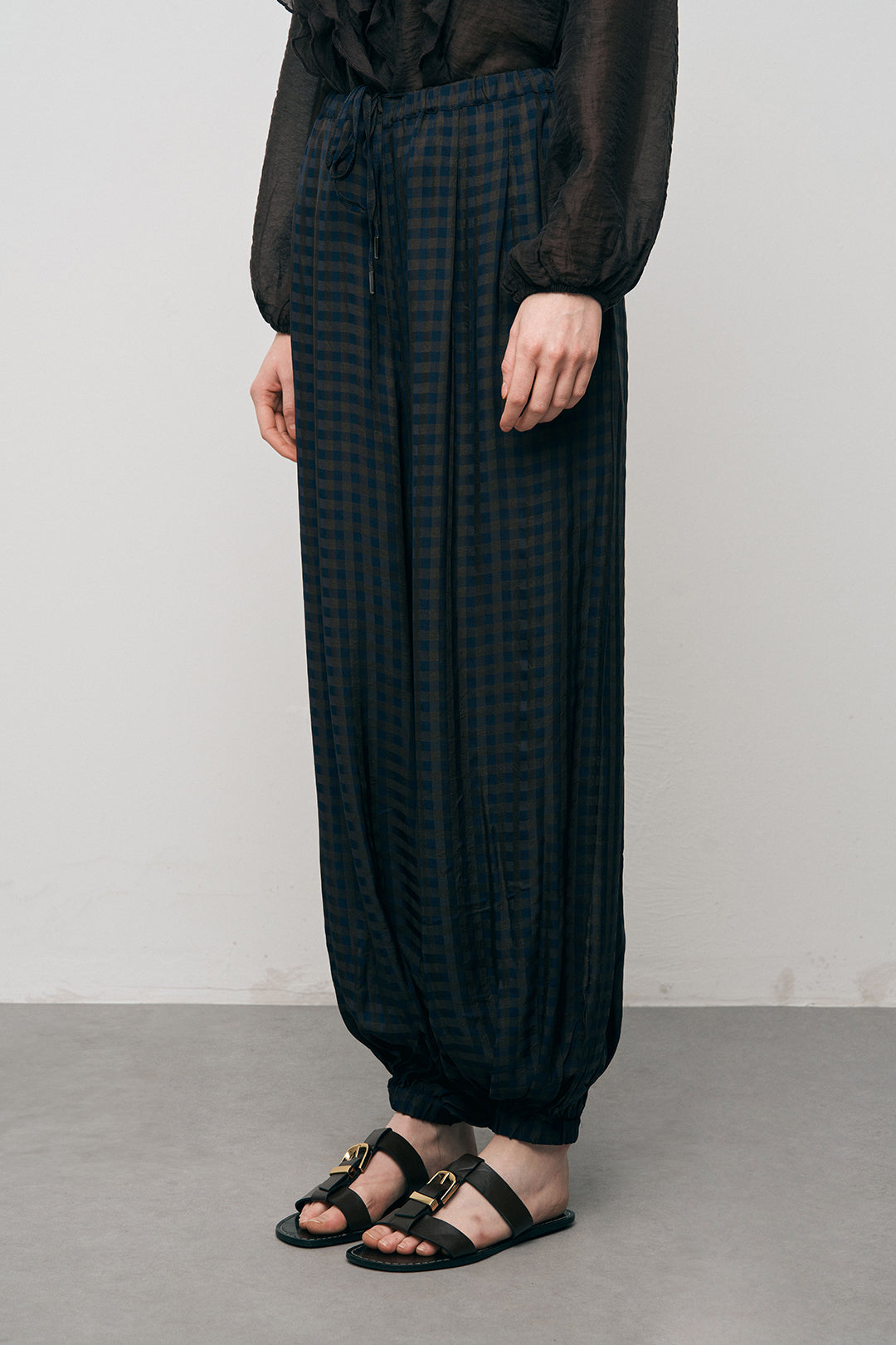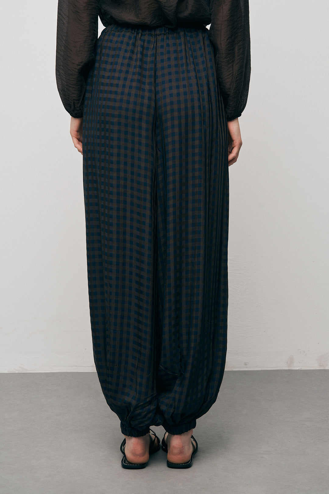 Kadın Paçası Lastikli Ekose Desenli Modern Şalvar Pantolon