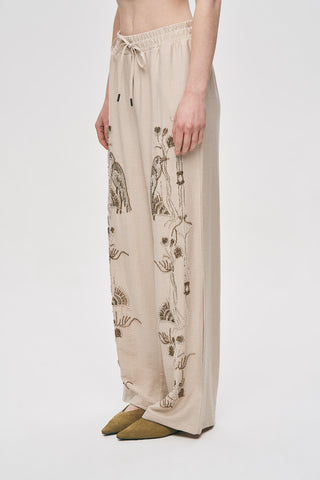 Kadın Etnik Modern Boncuk İşlemeli Natur Palazzo Pantolon