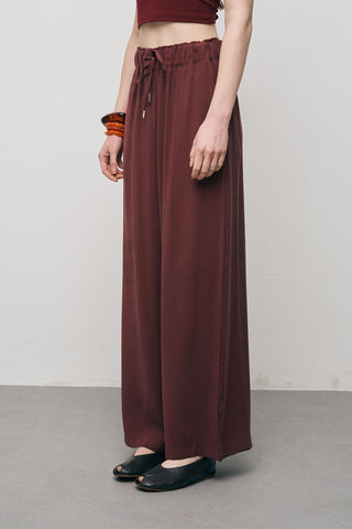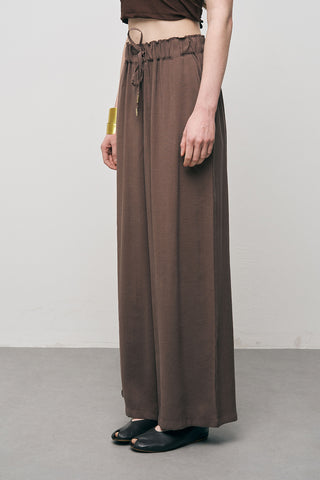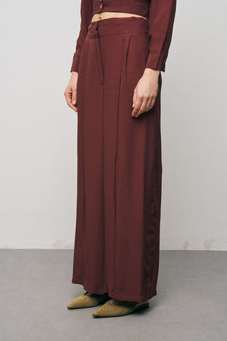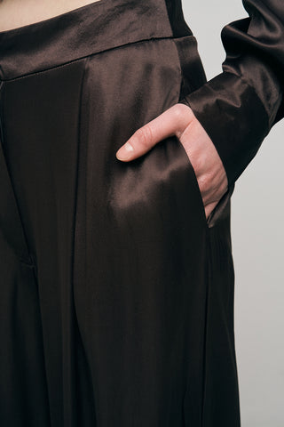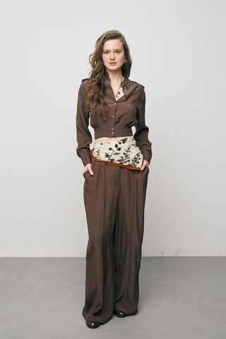 Kahverengi Saten Şalvar Kesim Paçası Manşetli Pantolon