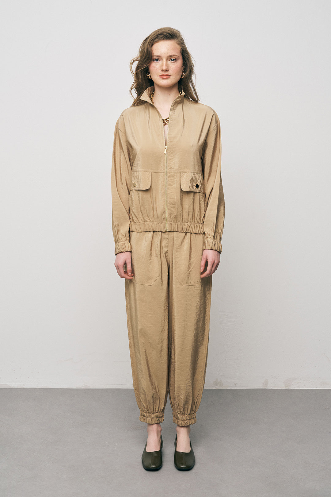 Modern Aksesuarlar: Bu ceketi iri halka küpeler ve görsellerdeki gibi gold zincir kolyelerle tamamlayarak sportif duruşunuza lüks bir hava katın.
