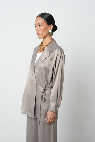 Kadın Bağlamalı Saten Görünümlü Vizon Ceket