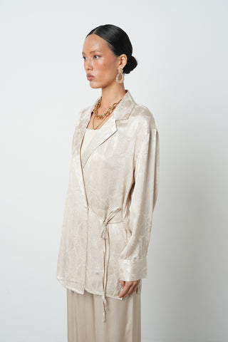 Kadın Jakar Dokulu Bağlamalı Viskon Bej Ceket