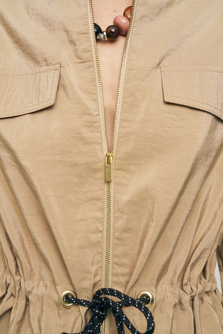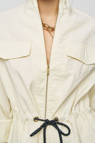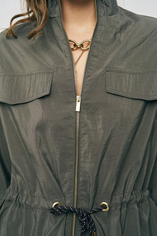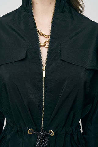 Kadın Comfort Beli Büzgülü ve Kol Bağlama Detaylı Fermuarlı Ceket