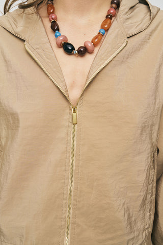 Kadın Comfort Kapüşonlu Fermuarlı Beli Lastikli Crop Ceket