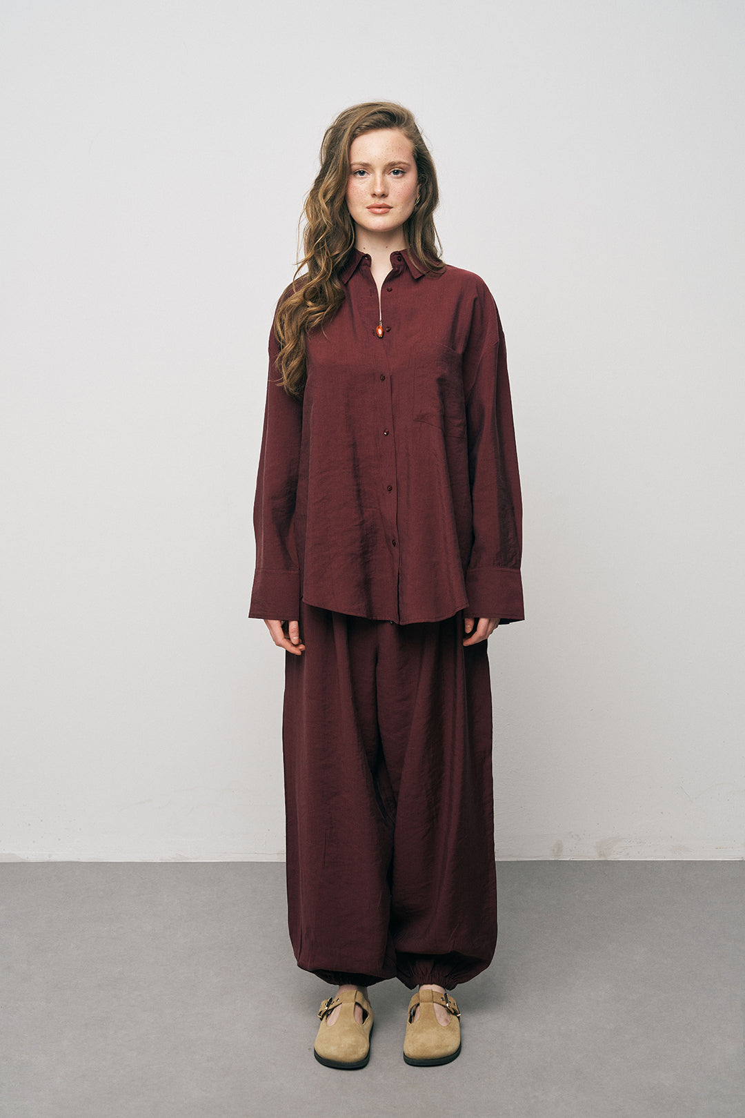 Zahmetsiz Lyocell Takımı: Gömleğinizi aynı dokudaki Lyocell Luxe Jogger Pantolon ile kombinleyerek sezonun en güçlü "rahat lüks" görünümünü yakalayın.