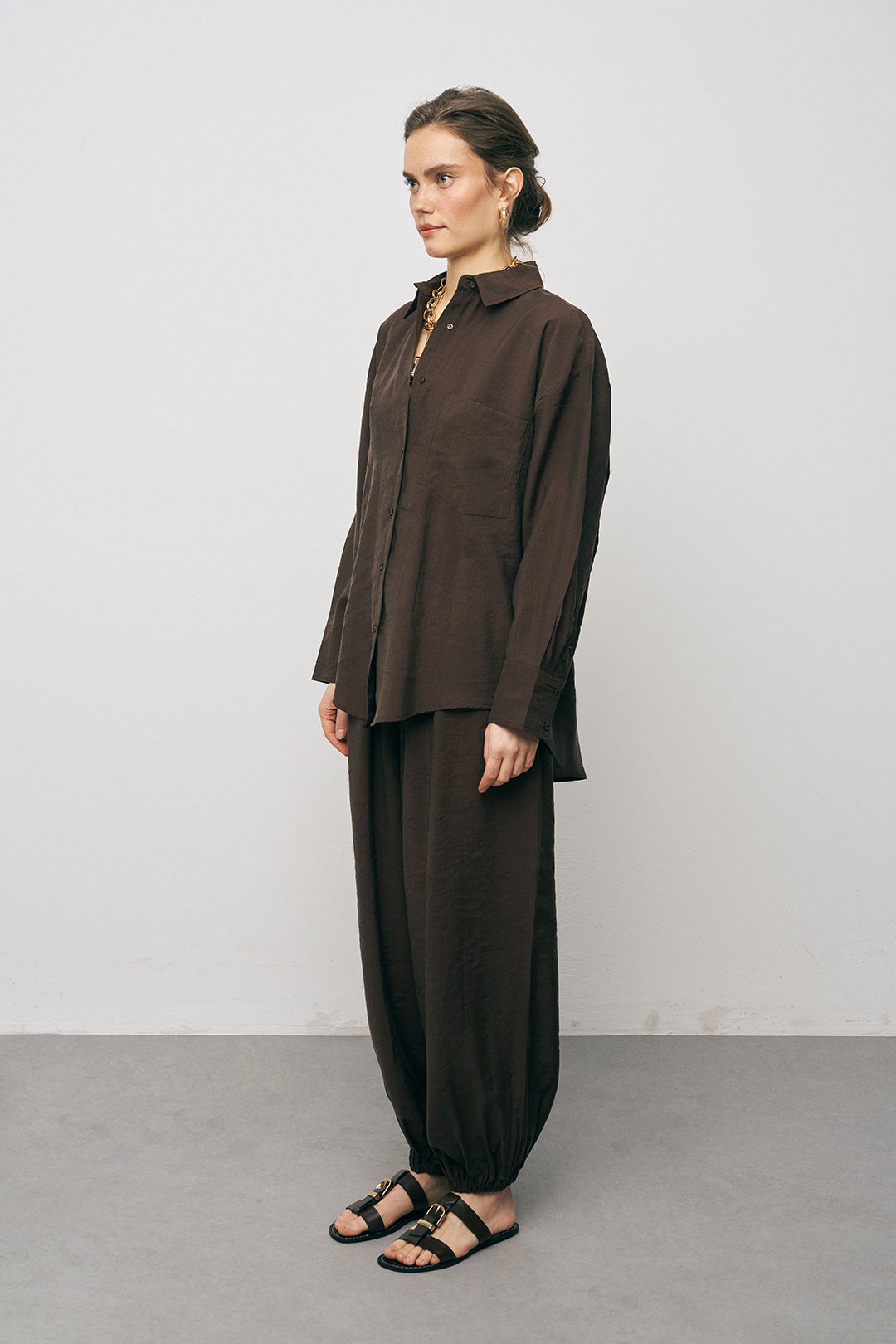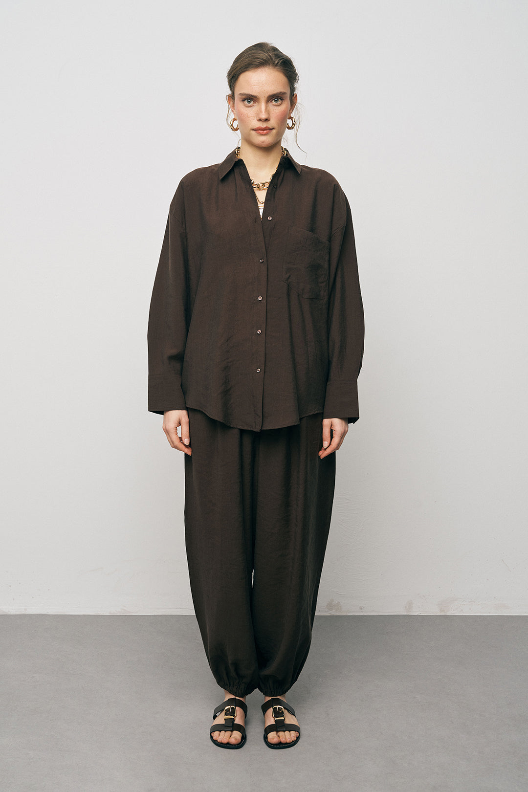 Zahmetsiz Lyocell Takımı: Gömleğinizi aynı dokudaki Lyocell Luxe Jogger Pantolon ile kombinleyerek sezonun en güçlü "rahat lüks" görünümünü yakalayın.