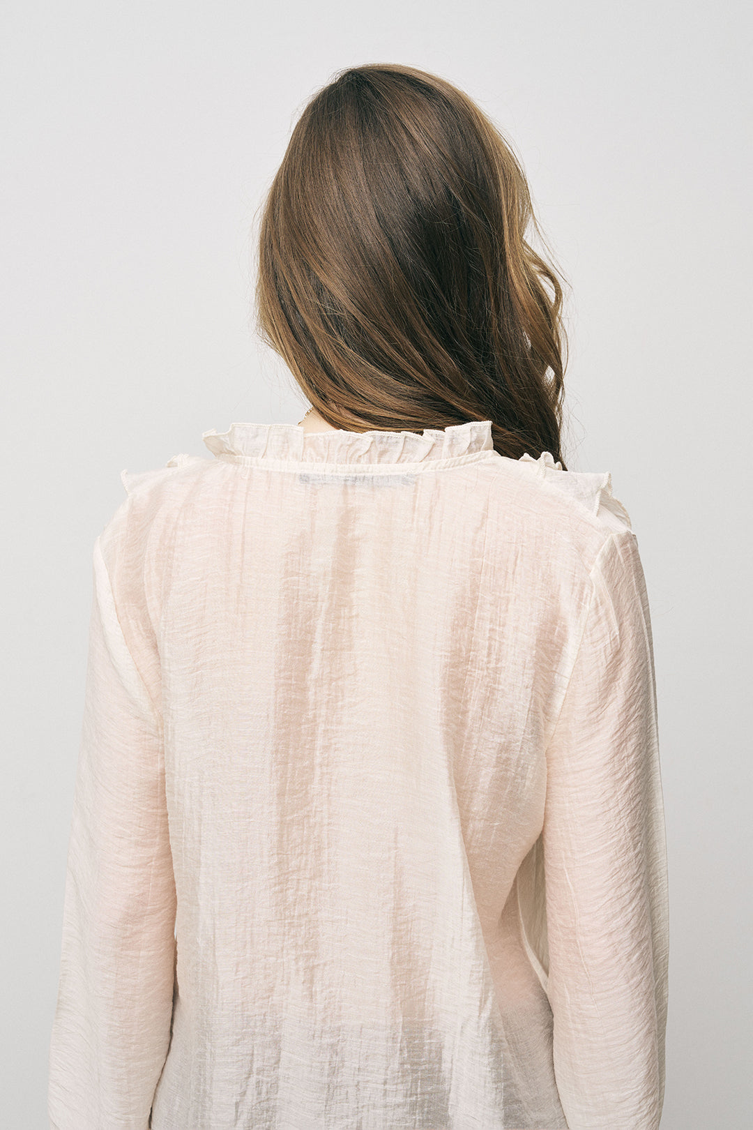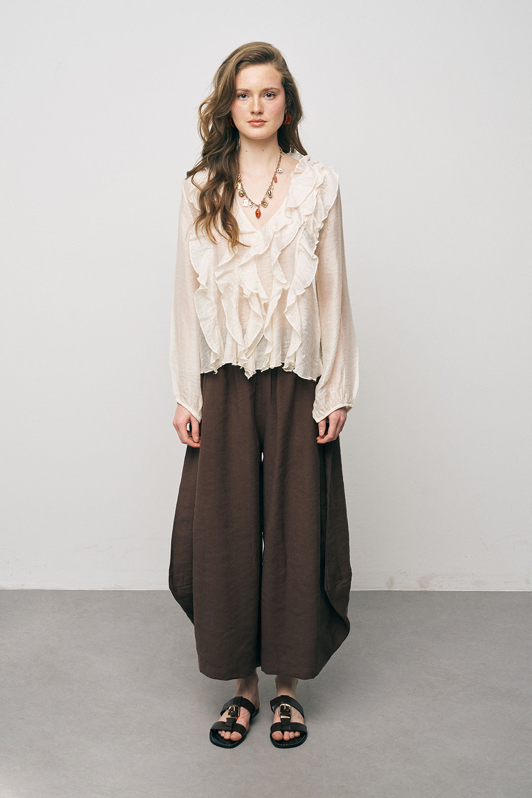 Türkiye’de kendi üretim tesislerimizde büyük bir titizlikle hazırlanan bu şifon gömlek, %75 Liyosel ve %25 Polyamid karışımıyla ipeksi bir dokuya ve nefes alan, son derece hafif bir yapıya sahiptir. Tasarımın karakteristik volan detayları, silüetinize romantik ve dinamik bir stil katar. 2026 "pastel şifon" trendine uygun olarak tasarlanan bu parça, bahar ve yaz aylarının en zarif tamamlayıcısı olacak.