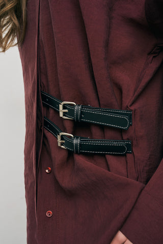 Kadın Lyocell Luxe Çift Kemer Aksesuarlı İpeksi Gömlek