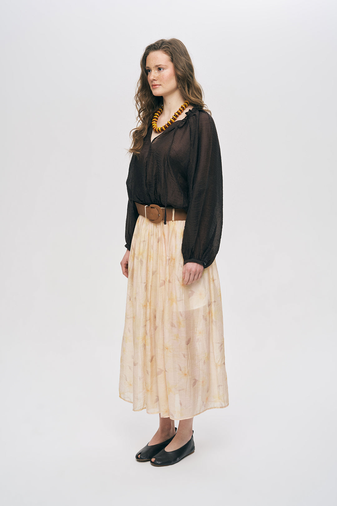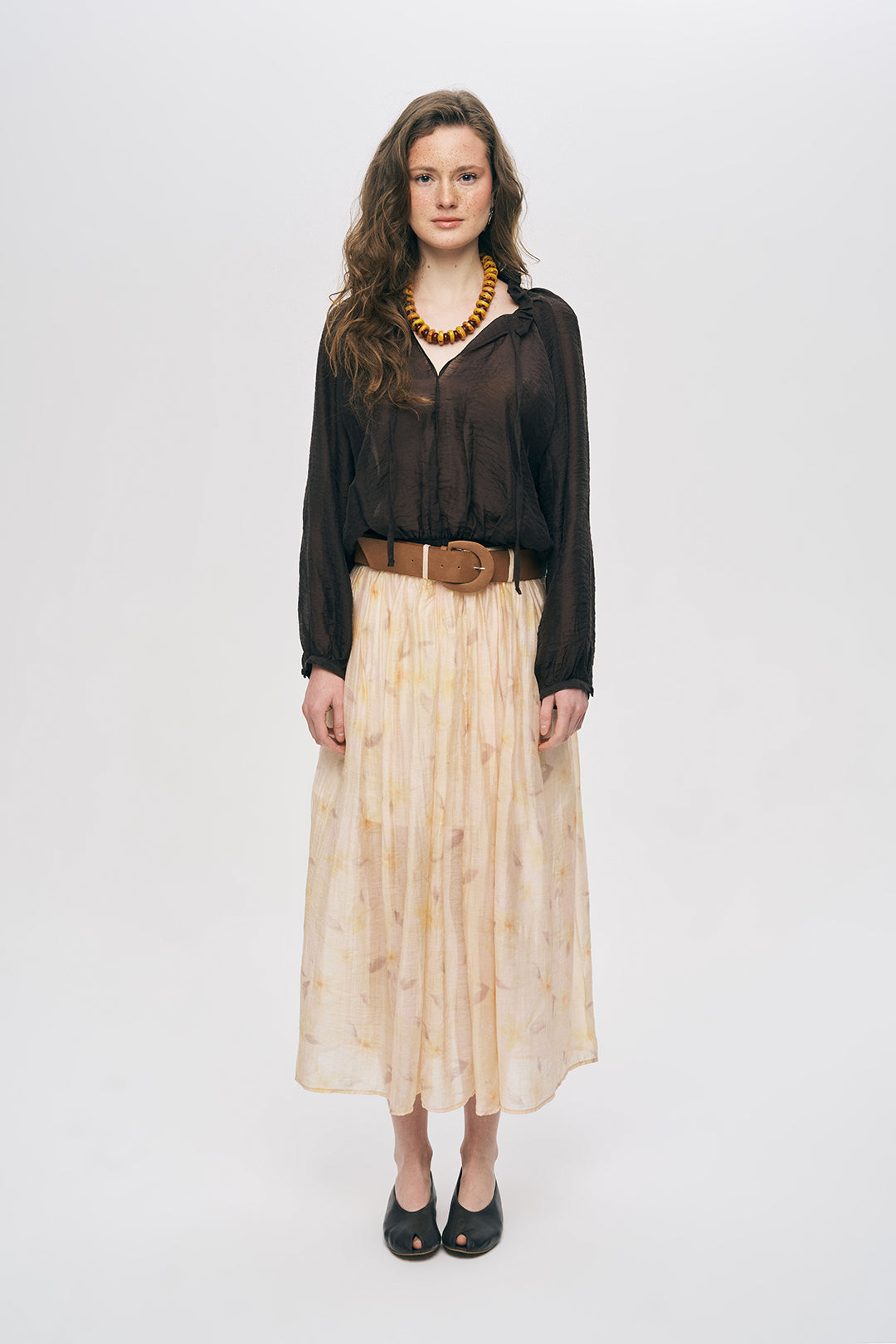 Bohem ve Şık: Bluzunuzu, görseldeki gibi yüksek bel, desenli ve uçuşan uzun eteklerle kombinleyerek feminen bir duruş yakalayın.