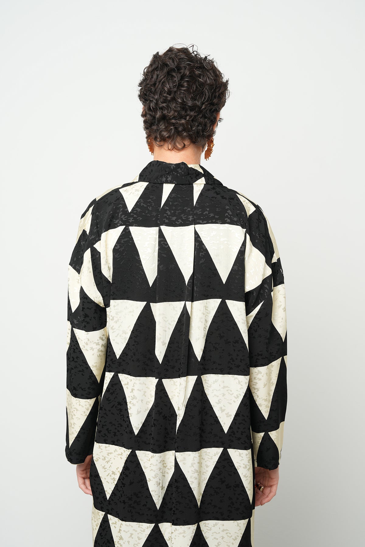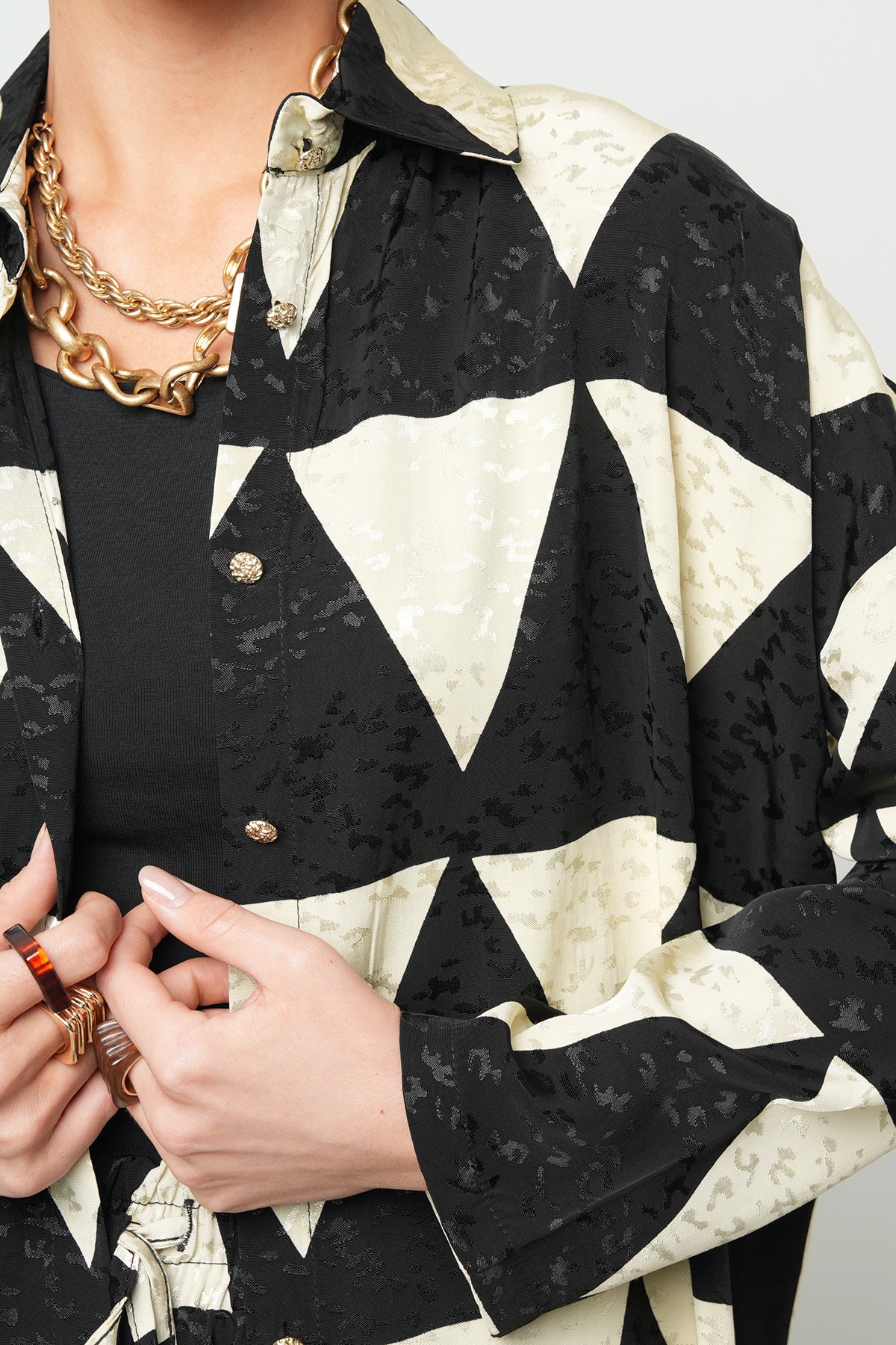 Kadın Geometrik Üçgen Desenli Modern Uzun Tunik Gömlek