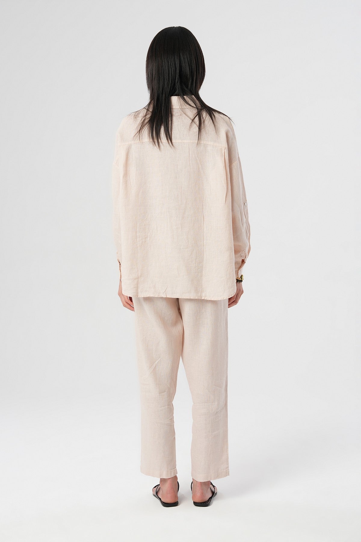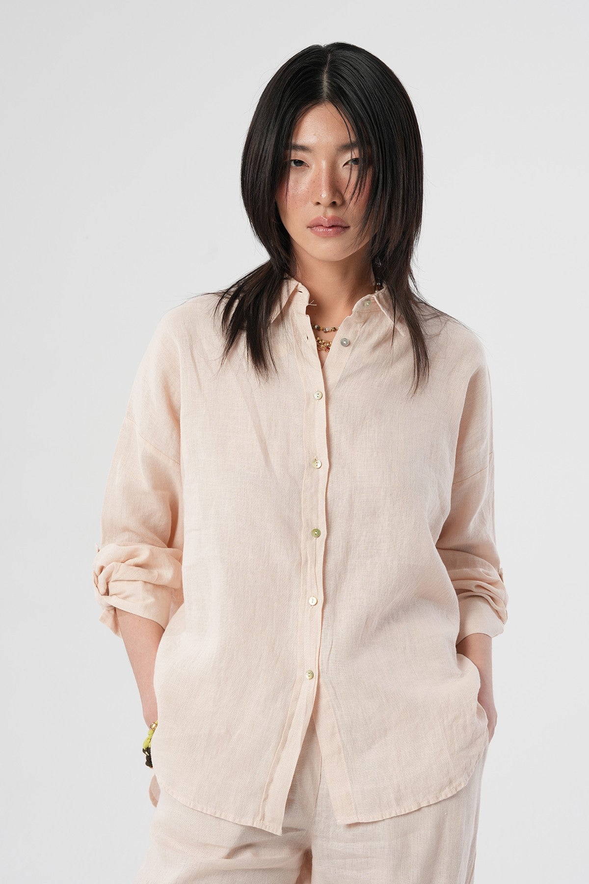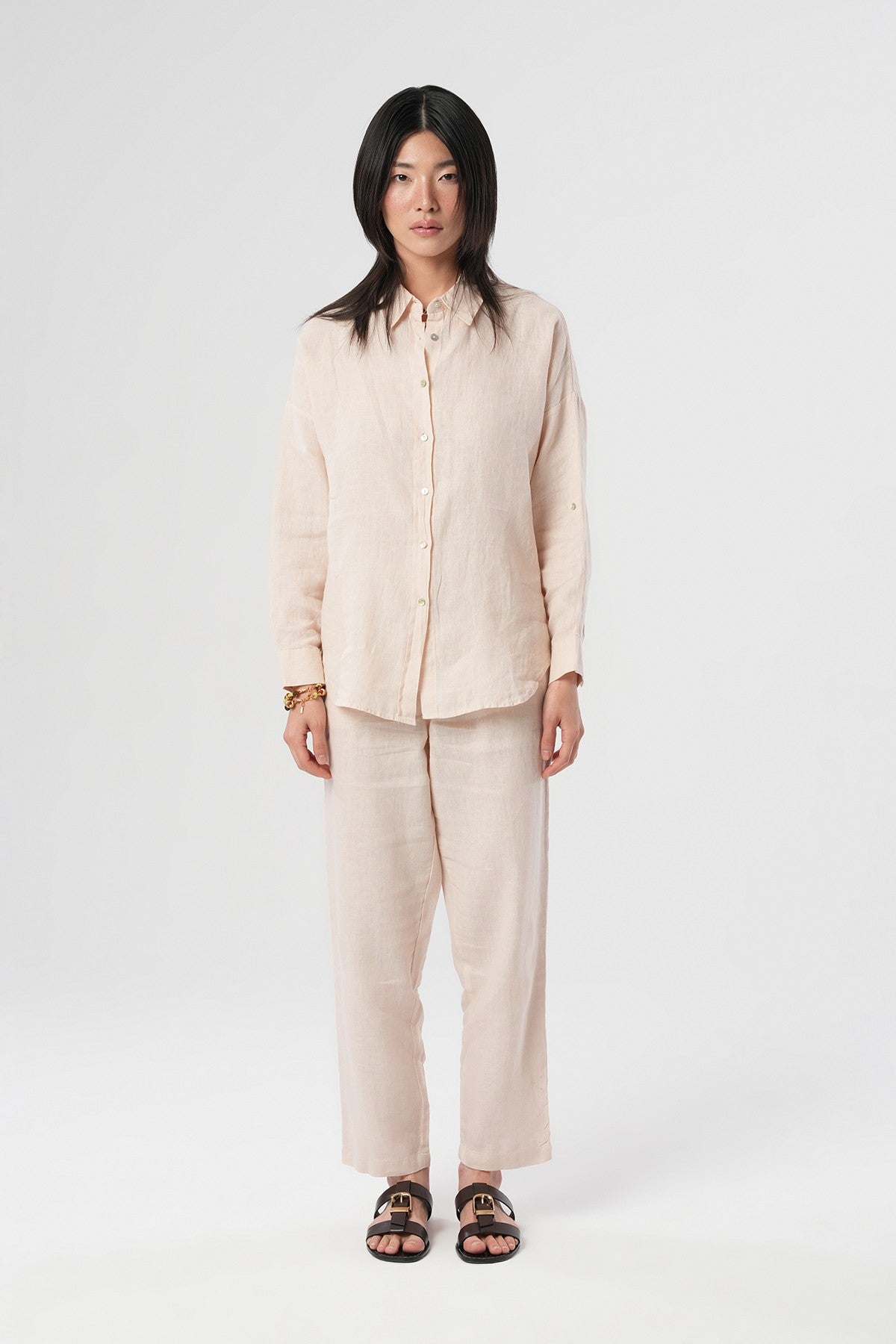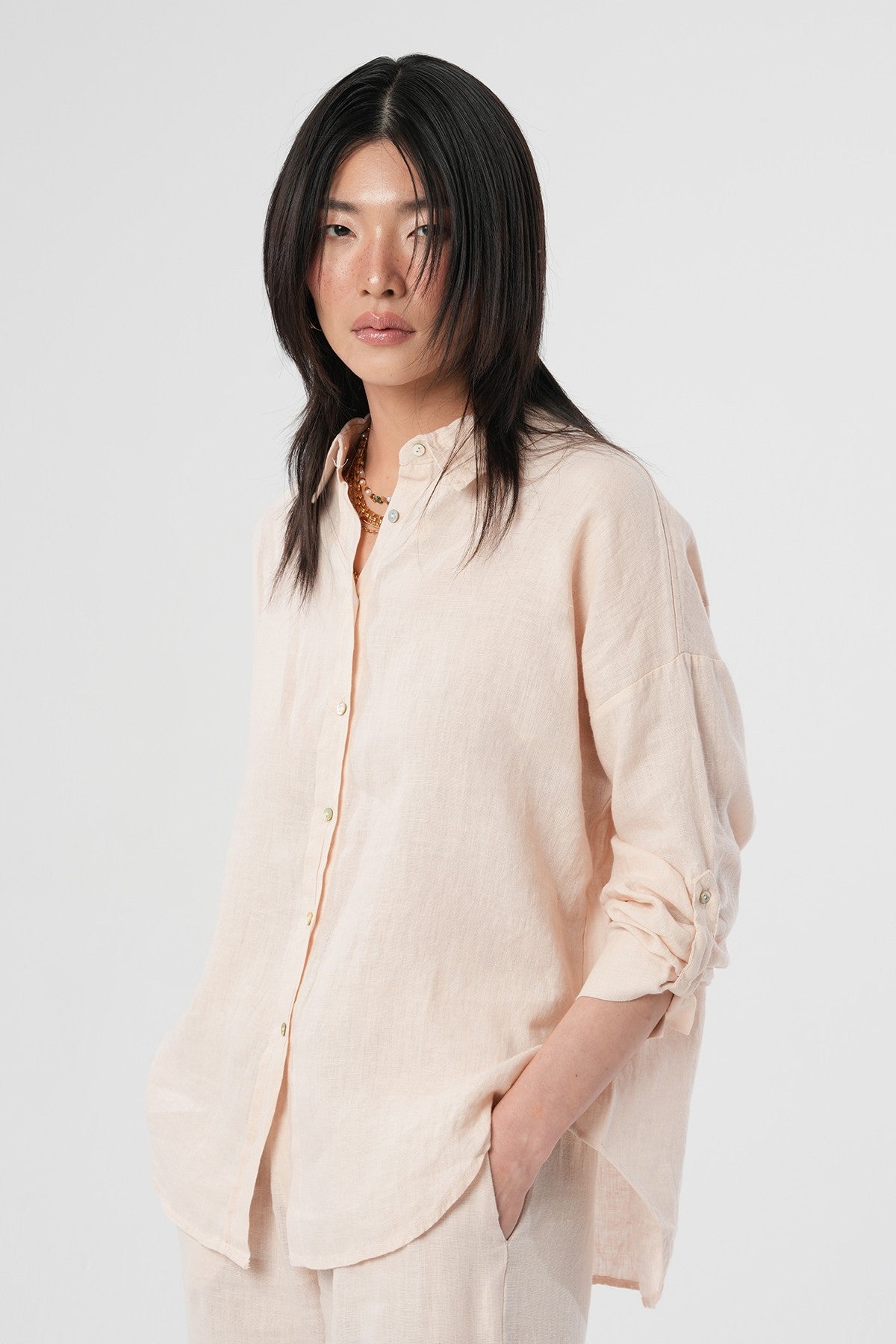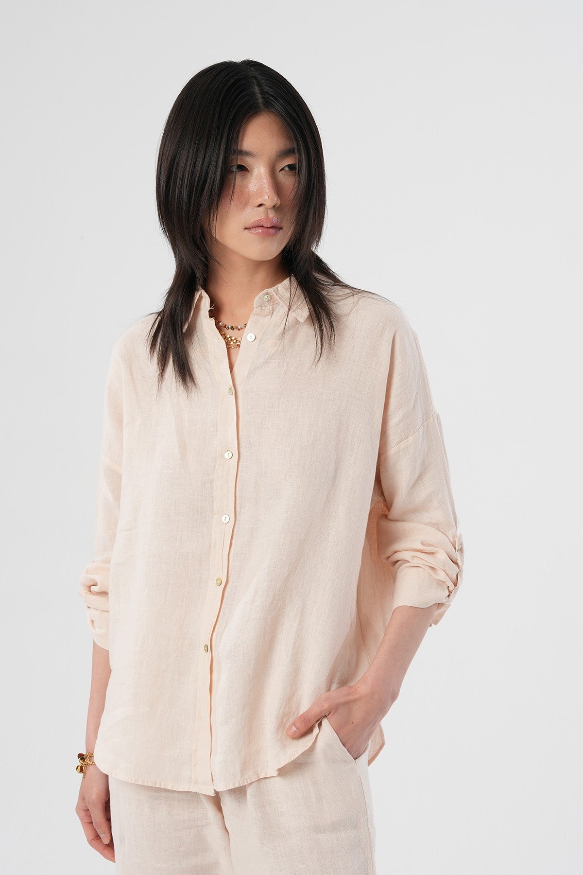 KADIN %100 KETEN KOLLARI DÜĞME DETAYLI GÖMLEK